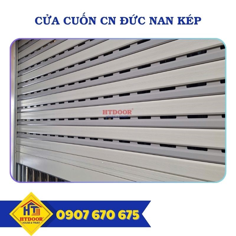 Cửa cuốn công nghệ Đức nan kép là dòng sản phẩm cửa cuốn cao cấp, sử dụng cấu tạo hai lớp nan nhôm ghép lại với nhau, tạo nên một thân cửa vững chắc hơn đáng kể so với các loại nan đơn. Công nghệ này tối ưu hóa độ bền, khả năng chịu lực và đảm bảo an ninh cho công trình.