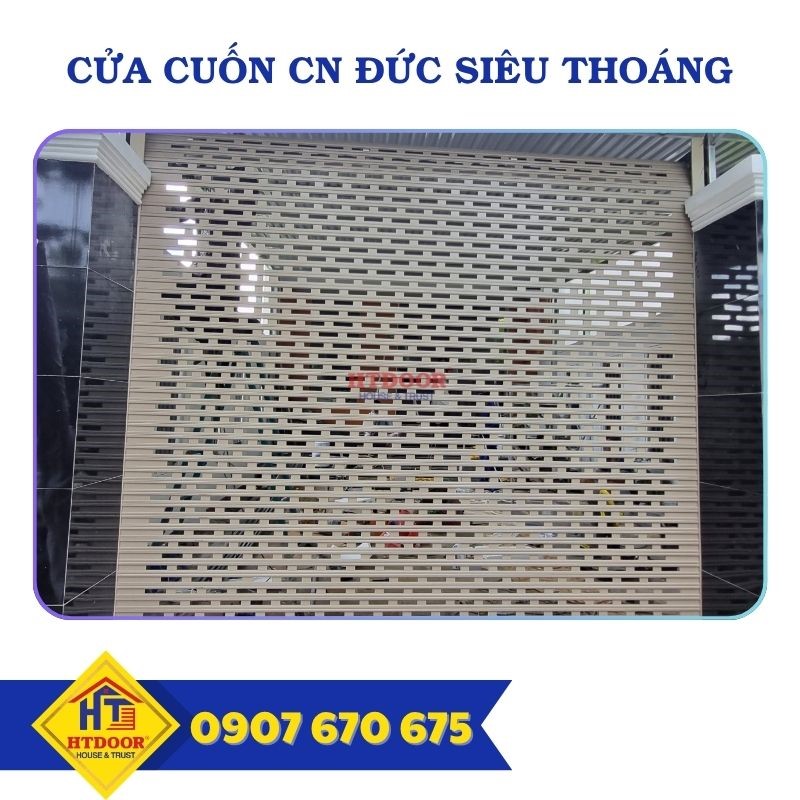Các khe thoáng (lỗ thoáng) được thiết kế lớn hơn (thường hình oval to hoặc elip dẹt) hoặc bố trí dày đặc hơn so với cửa cuốn Đức tiêu chuẩn.