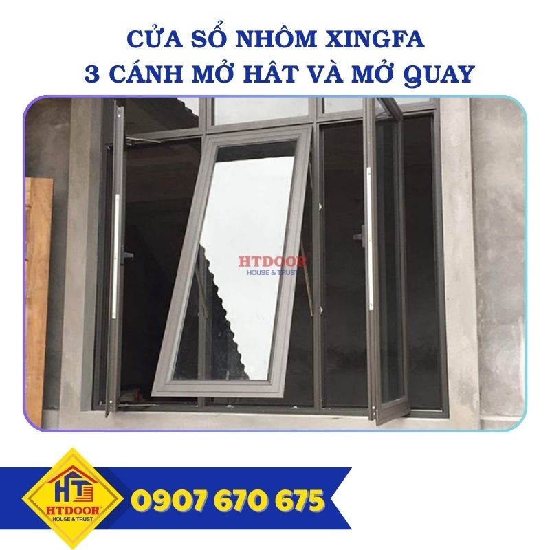 Cửa sổ 3 cánh nhôm Xingfa mở hất kết hợp mở quay